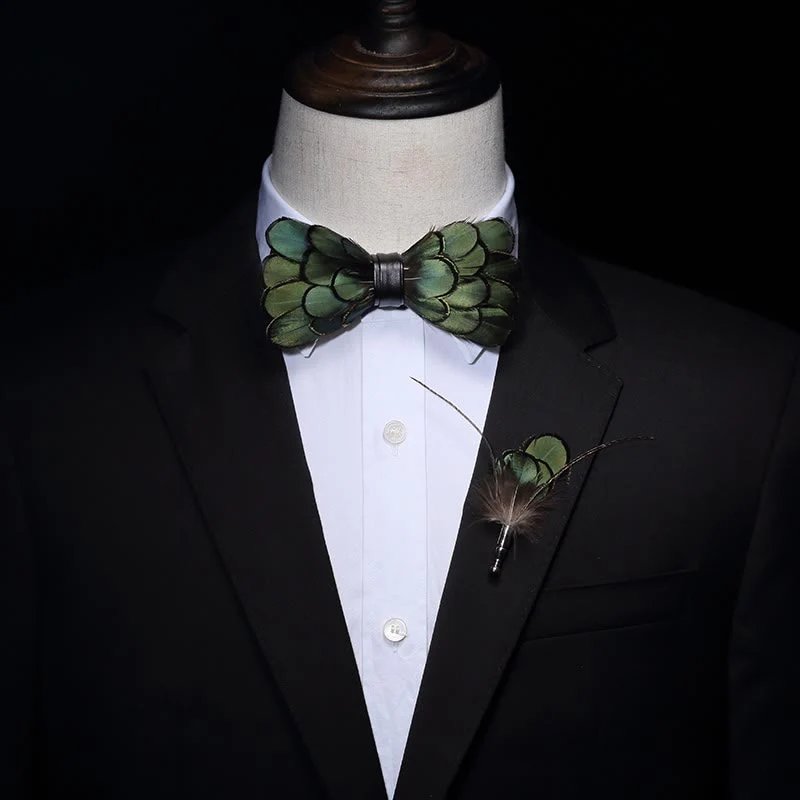 - Features: This classic feather bow tie with layered 3D effect reflects hues of dark olive green, is both unique and beautiful. Bring it to a party and the party theme becomes a quiet forest theme.